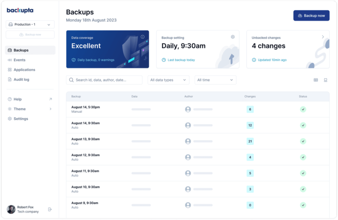 Backupta es una solución confiable para proteger y gestionar el entorno Okta. Crea copias de seguridad automáticamente, permite la rápida restauración de datos y garantiza el control total sobre la configuración.